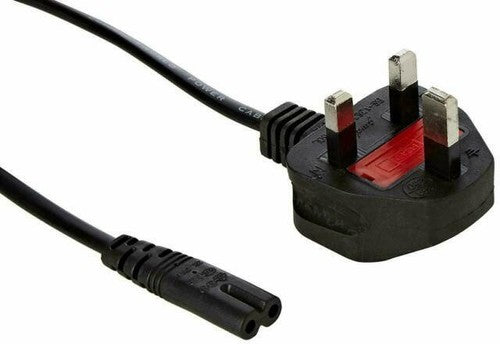 UK 3 Pin To Figure 8 Power Cable 2 Core 0.75mm2 Flat Black