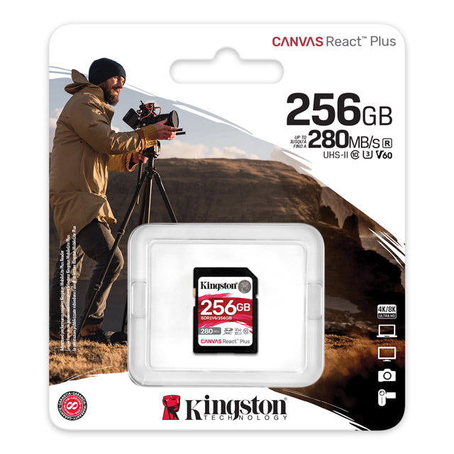 Unleash the full potential of your high-end camera with the Kingston Canvas React Plus SDXC card. Designed for professional photographers and videographers, this card delivers exceptional speed and reliability for capturing stunning 4K/8K videos and high-resolution images.