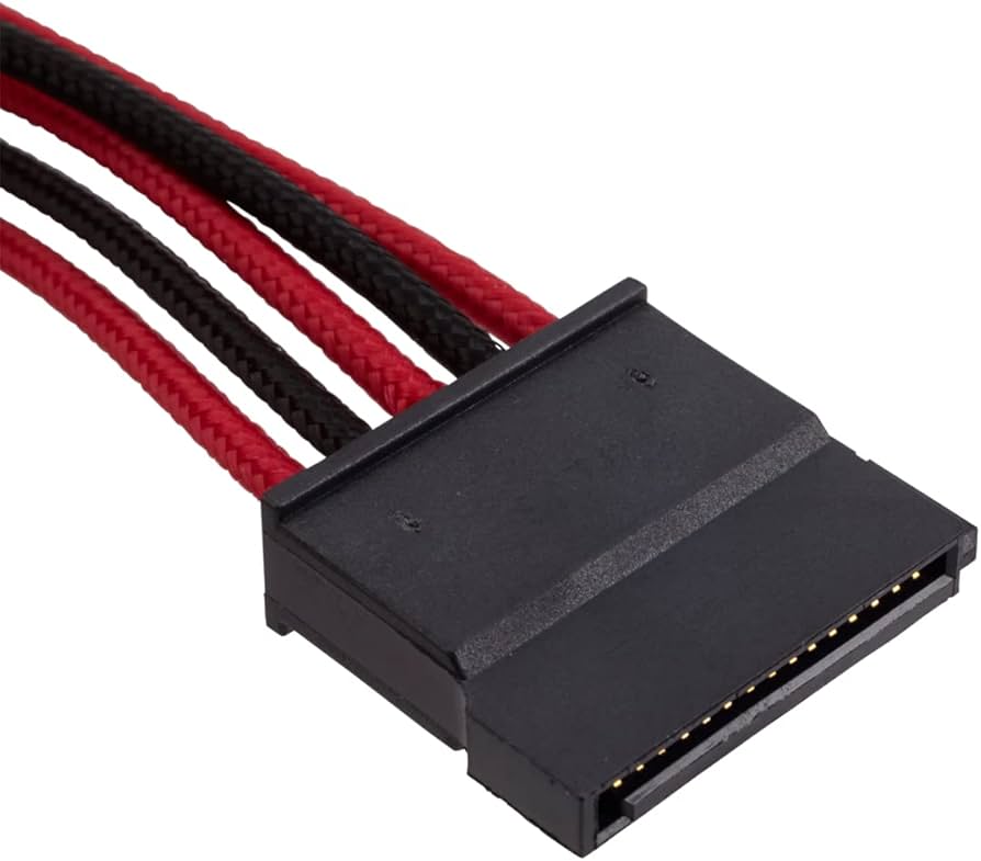Upgrade your PC build with the Corsair CP-8920190 premium individually sleeved SATA cable kit. These flexible paracord cables, featuring a red and black design, will add a professional and stylish touch to your system's internal aesthetics.