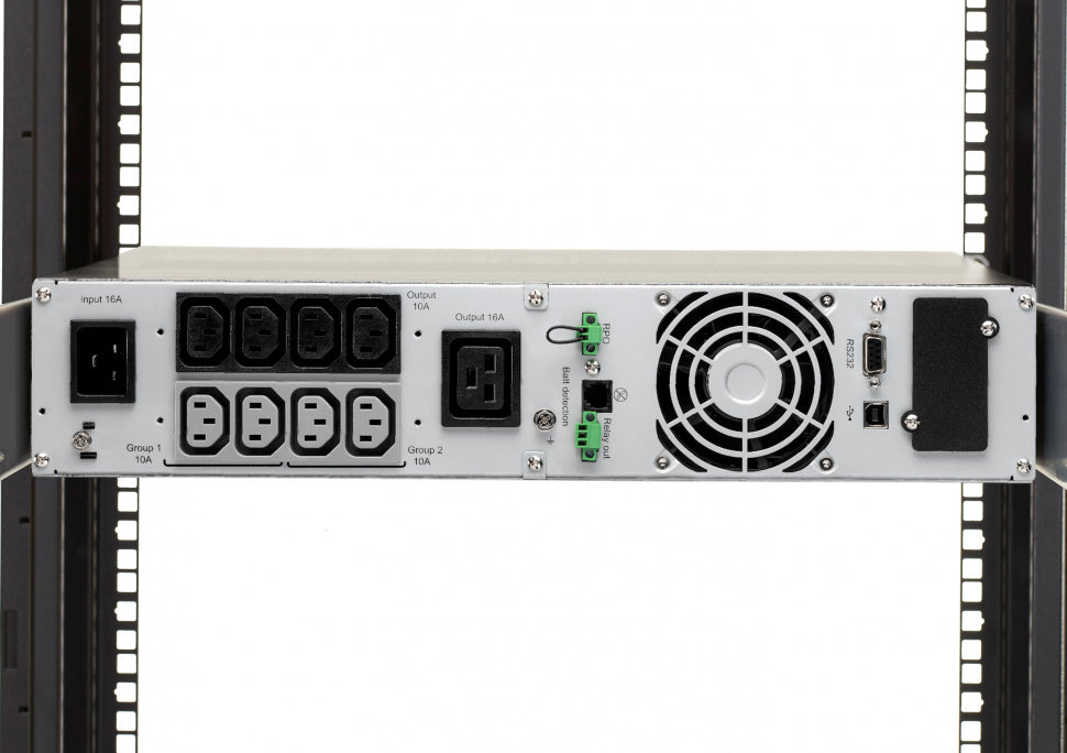 Designed for easy integration, this 2U rackmount UPS comes with all necessary mounting hardware. It offers multiple communication options, including USB and RS232 serial ports, as well as a slot for an optional network card for remote monitoring and management. The Eaton 9SX is compatible with Eaton's Intelligent Power® Software, which seamlessly integrates with leading virtualization environments. Load segment control allows for prioritized shutdown of non-essential equipment to maximize battery runtime for your most critical devices.