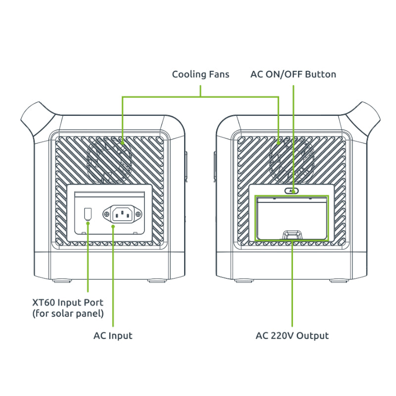 | AC Output | 1x 220-240V/50Hz 800W Rated |