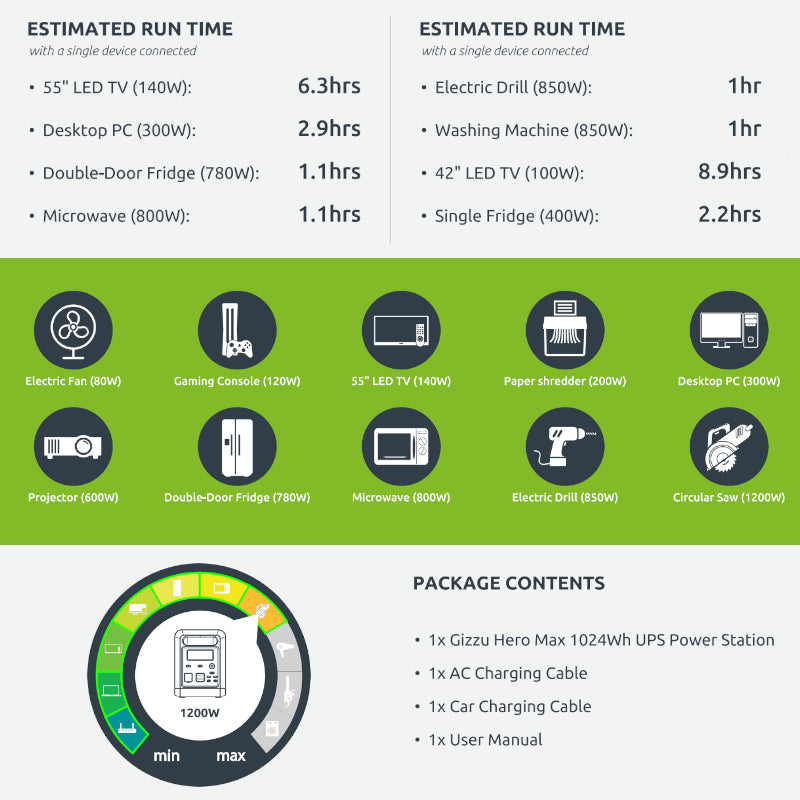 - Gizzu Hero Max 1024Wh UPS Power Station x1