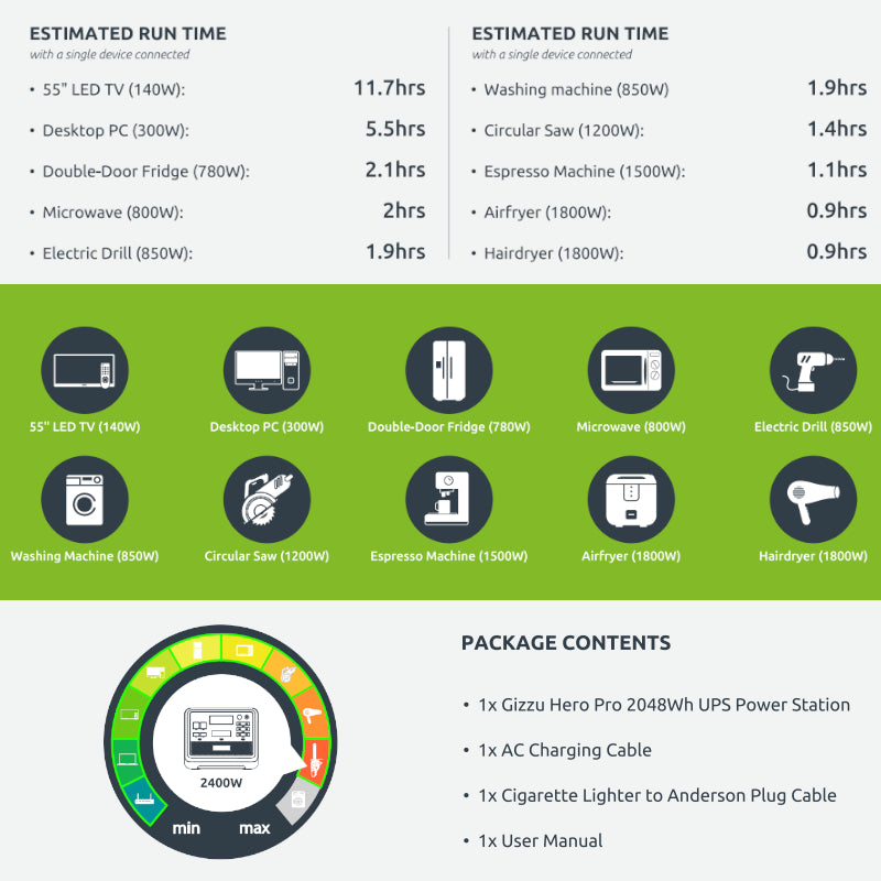 - Gizzu Hero Pro 2048Wh UPS Power Station x1