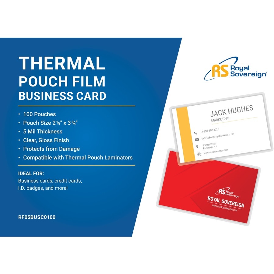 Protect your branding with the Royal Laminating Pocket Business Card sleeves. This 100-piece set arrives in retail packaging and is offered without warranty, delivering an affordable, professional solution for presenting and safeguarding your business cards.