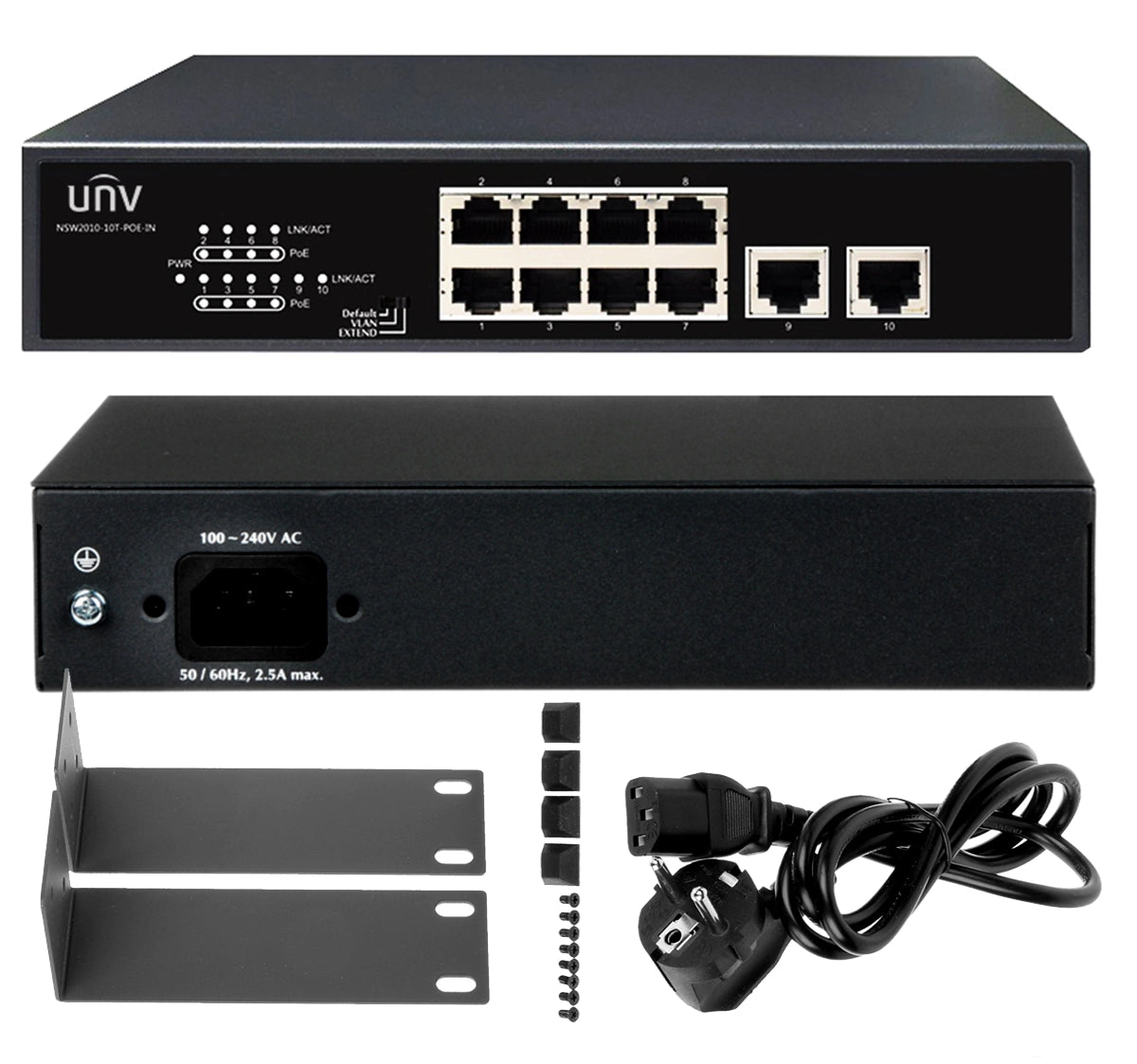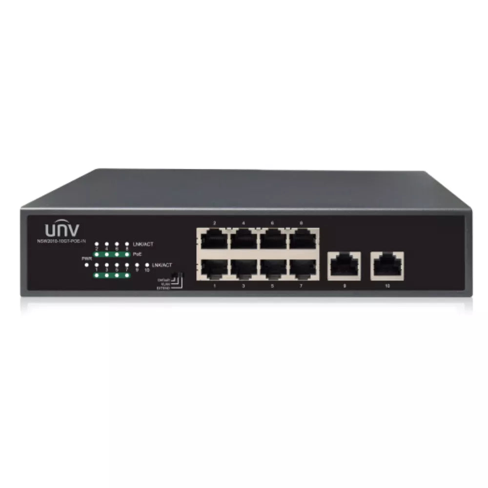 Elevate your network's capabilities with the Uniview 10-Port Gigabit PoE+ Switch. Designed for high-performance applications, this switch provides a robust and reliable solution for powering IP cameras, access points, IP phones, and other PoE-enabled devices. With 8 Gigabit PoE+ ports and 2 dedicated Gigabit uplink ports, you can ensure seamless data transmission and a stable, high-speed connection for your critical network infrastructure.