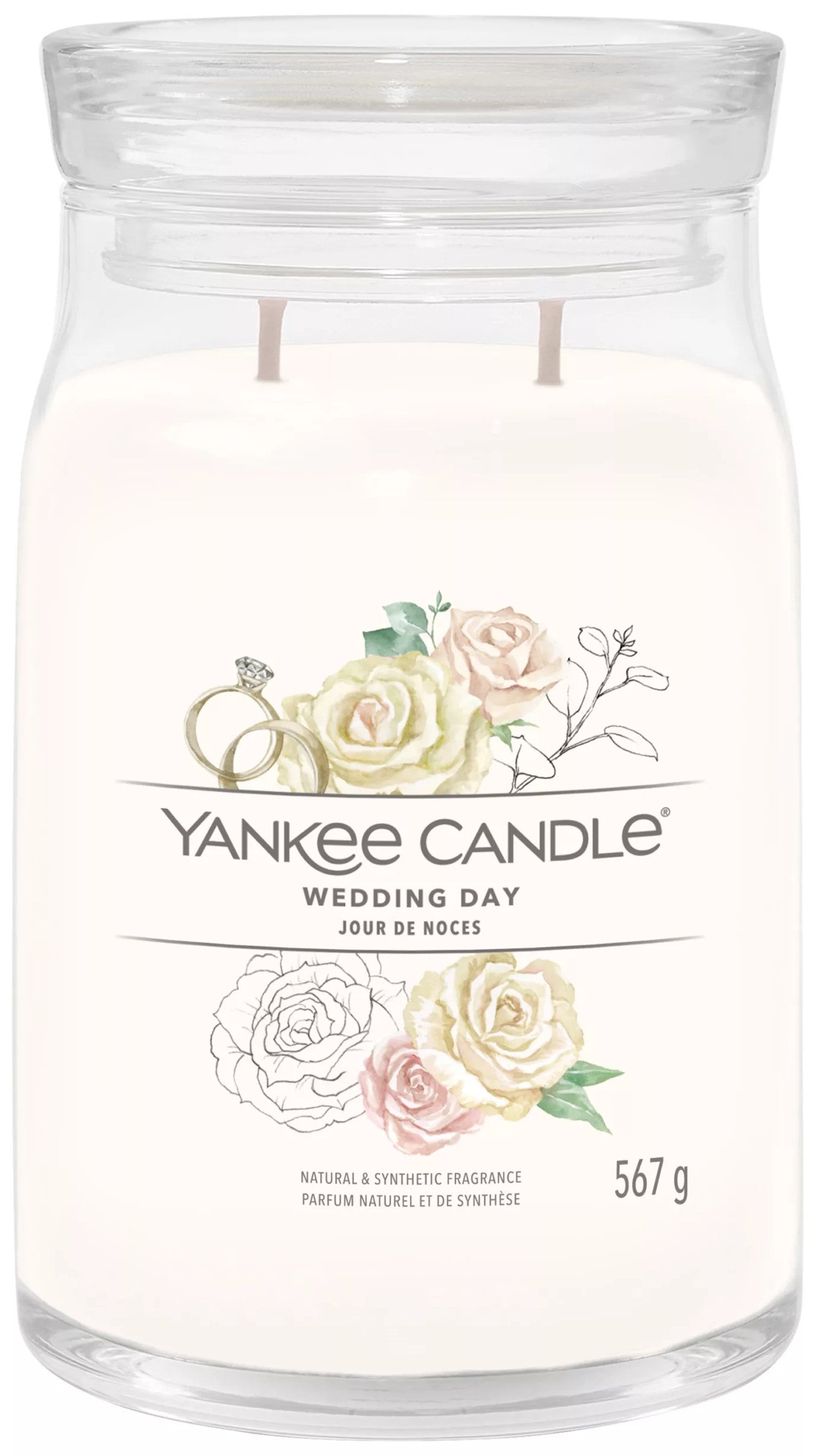 Experience the refined allure of Yankee Candle Wedding Day in a Signature Large Jar. This 2-wick candle releases a sophisticated floral fragrance blended with bright citrus, mimosa, jasmine, rose, sandalwood, and musk, delivering a calming, elegant ambiance to any room. Ideal for weddings, anniversaries, or simply elevating your everyday space with a scent that feels timeless and premium.